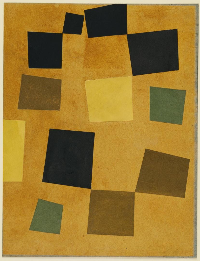 “Untitled (Collage with Squares Arranged according to the Law of Chance)” by Jean Arp in 1916–1917